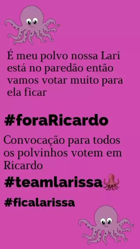 votem muito pra nossa Larii ficar meu polvo 🐙 #TeamLarissa #larissavencedora #BBB #FORARICARDO #Larissa