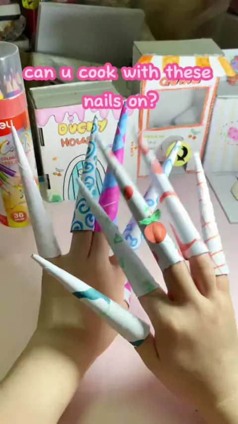 Fazendo unhas de papel pela primeira vez ^ ^ foi tão difícil fazer isso com unhas de papel nas minhas mãos direitas: Vvvv # papernails # papernailstutorial # papercraft