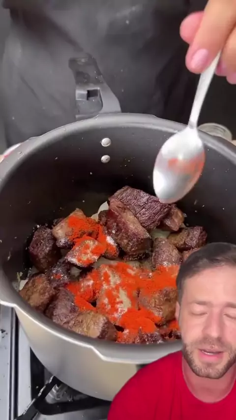 🔥🥩 A CARNE DE PANELA mais macia da sua vida! 😱✨ O segredo tá nesse passo a passo simples — e o sabor… é de derreter na boca! 🤤💥 👉 Ingredientes: • 1 kg de carne (acém, músculo ou paleta) 🥩 • 1 colher de sopa de manteiga 🧈 • 1 cebola picada 🧅 • 3 dentes de alho amassados 🧄 • 2 tomates picados 🍅 • 1 cenoura em rodelas 🥕 • 2 batatas em cubos 🥔 • 1 colher de chá de sal 🧂 • ½ colher de chá de pimenta-do-reino 🌶️ • ½ colher de chá de páprica ✨ • 300 ml de água 💧 Frite a carne na mante