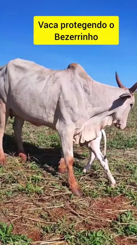 vaca nelore não deixa cuida do bezerrinho dela #gado #gadonelore #bezerro #fazenda #agro More