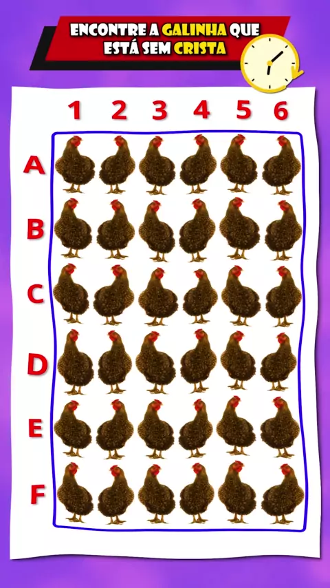 Descubra a galinha sem crista neste desafio visual #TesteDeVisão #testecognitivo