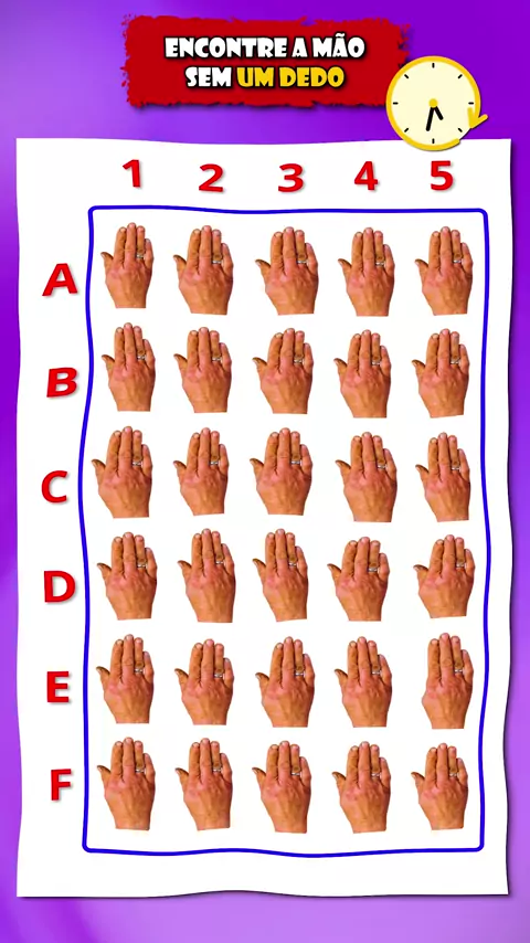 Desafie sua visão encontrando a mão sem um dedo neste desafio visual #TesteDeVisão #testecognitivo