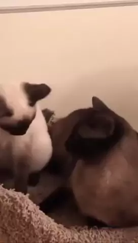 gato Siamês e filhote de gato miando