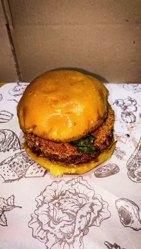 THE BURGER COM CREAM CHEESE EMPANADO E COUVE CRISPY. #theburgerrecife #theburger #hamburguer #burgerartesanal #carnedeverdade