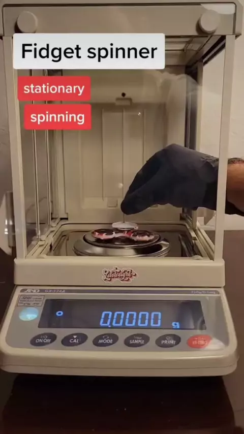 Fidget Spinner sendo pesado enquanto gira # science # experience # OLAFLEX