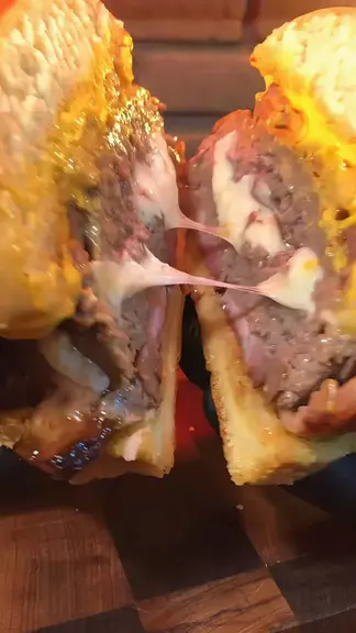 Hambúrguer recheado! 🍔🥓🧀 #burger