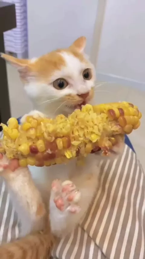Um gatinho muito lindo comendo milho π€©πππ» #meugatinho #juntossomosmaisfortes