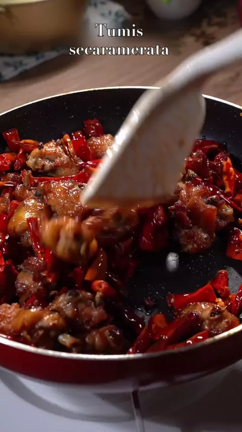Sayap ayam pedas yang besar, cukup pedas, sangat nikmat.