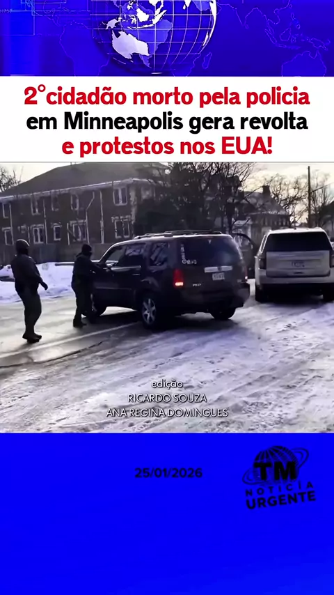 É o segundo americano morto a bala em menos de um mês pela polícia de imigração na cidade do estado de Minnesota nos eua #eua #Notícia #noticias