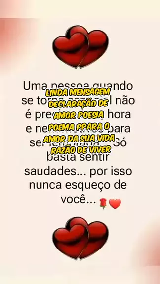LINDA MENSAGEM DECLARAÇÃO DE AMOR POESIA POEMA PPARA O AMOR DA SUA VIDA RAZÃO DE VIVER