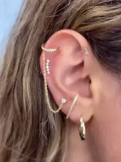 Rate this look 1-10 comment down below #earstyling #14kgold # #cutepiercingideas #styletips #earstack #earcuff #cuteearrings