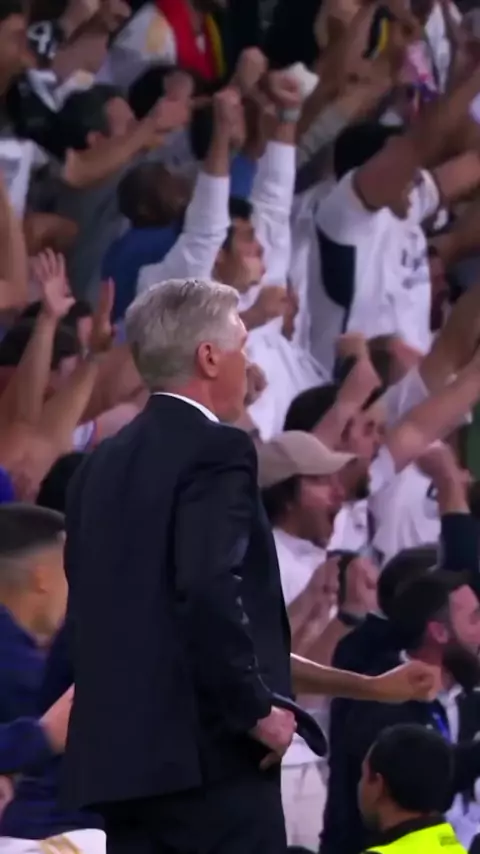 Verdadeiro Homem de Gelo, essa foi a reação de Carlo Ancelotti após o gol que deu a classificação para o Real Madrid na champions league🌎⚽️⚪️❄️ #carloancelotti #realmadrid #Champions #UCL #casadachampions
