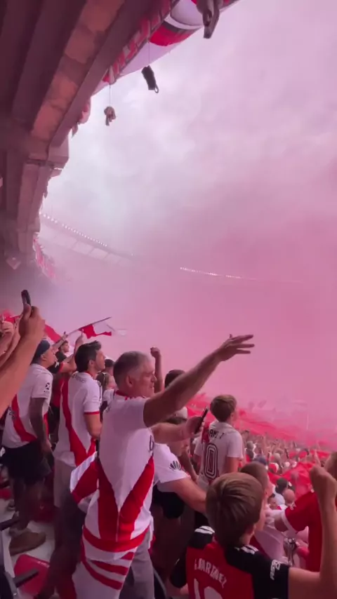 Fantástica festa da torcida do River Plate no Monumental "River, Me Buen Amigo"!⚪️❤️🔴🌍⚽️ #river #RiverPlate #Argentina #torcida #Futebol