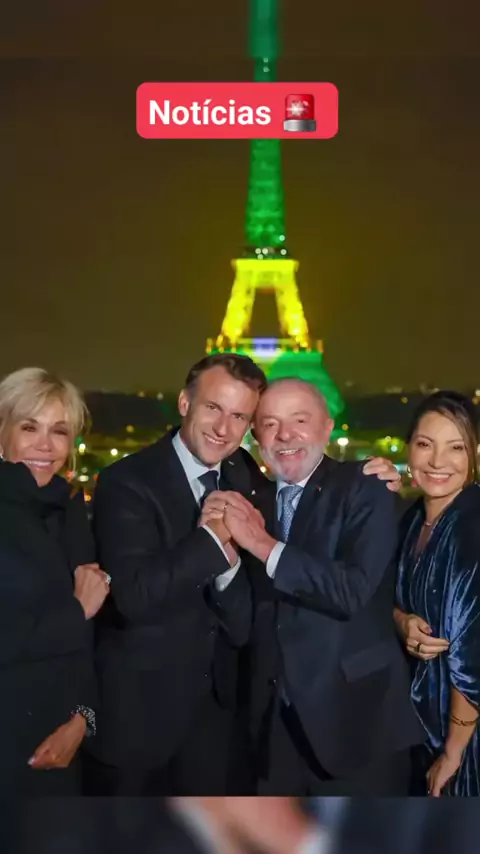 Notícias 🚨 | Macron e Lula na Torre Eiffel Verde e amarela🌎🚨👏🇧🇷🇫🇷 #Macron #Lula #torreeiffel #Brasil #França