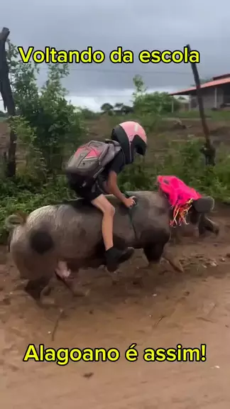 Voltando da escola, montado numa porca, alagoano é assim, improvisa seu transporte rsrsrs É desse jeito, montando em vários animais, aventurando e divertido os internautas que o menino Gutinho Rocha, de Girau do Ponciano, faz sucesso na internet.