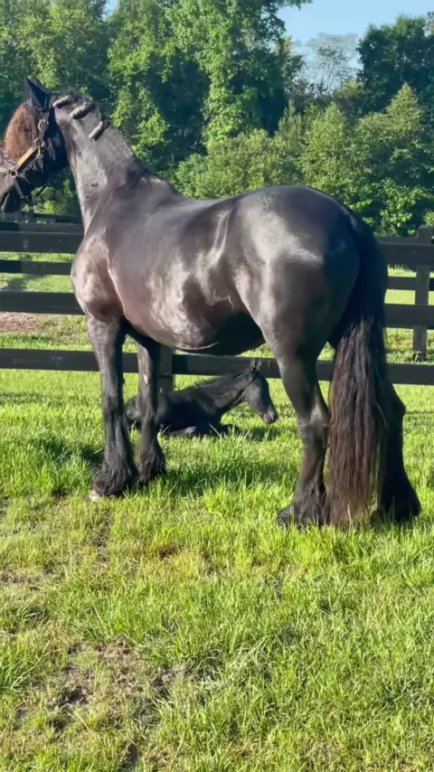 Um pouco de dança matinal e um cochilo para o homenzinho da Trudi # friesianhorse # friesian # foalsof # horsesof # # horse # colt # animals # dressage # empinando
