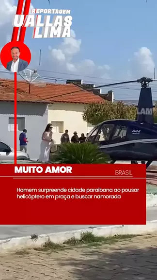 BELÉM DO BREJO DO CRUZ - PB. Um homem causou surpresa e alvoroço na cidade de Belém do Brejo do Cruz, interior da Paraíba, ao pousar um helicóptero na praça principal para buscar a namorada. A cena inusitada atraiu a atenção de curiosos e rapidamente viralizou nas redes sociais. A ousadia do gesto gerou diversos comentários e debates online. Detalhes sobre a identidade do homem e da namorada não foram divul