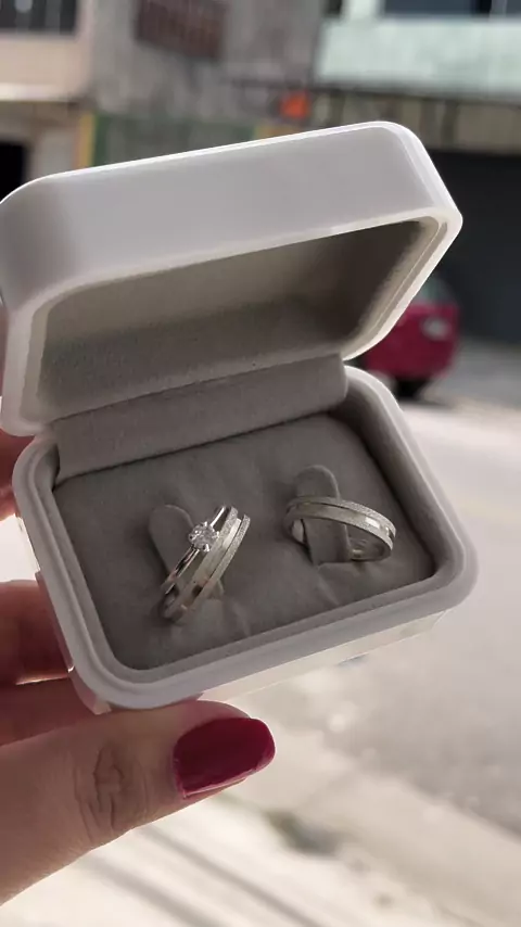 Par Alianças namoro Com frisos diamantadas + Anel Solitário