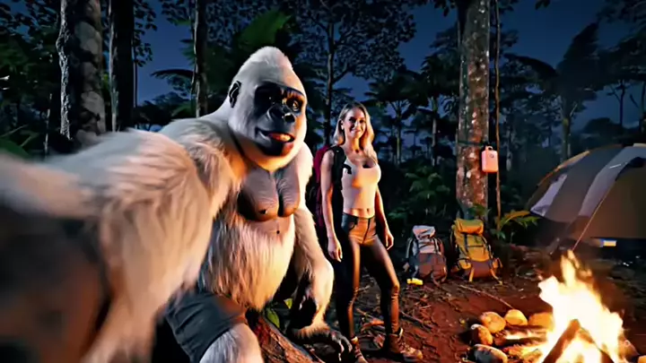 Pô de banana se deu bem hoje! #gorila #gorilaalbino #VideoComIA #veo3