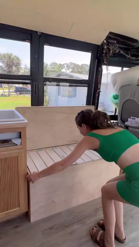 We no longer have a dinette & will have 2 pull out couches instead! Go follow us on the link is in my bio!#bustravel#skoolielife#skoolietravel#skoolie#skooliebuild#busbuild#tinyhome#tinyhomeonwheels#travel#bushome#buslifeconversion#tinyhouse#buslife#busliving#schoolbusconversion#schoolbus