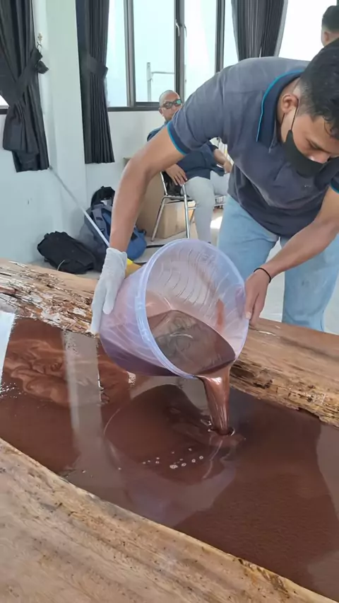 Menuangkan resin epoxy itu sungguh menyenangkan π₯π₯π₯ #mejaresin #mejaestetik #mejamakan #resinepoxy #resinart #resinartclass