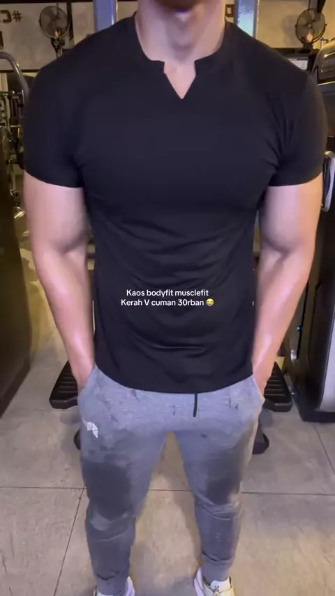 Kaos bodyfit musclefit dengan kerah V ini machoo banget man! #kaoscowok #rekomendasikaos #kaospolos #kaosbodyfit