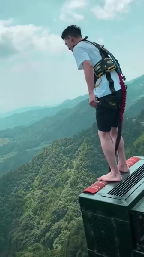 Capturou com sucesso um irmãozinho descalço com o salto superman mais legal # bungee # bungeejump # swing # bungeejumping # bungy #