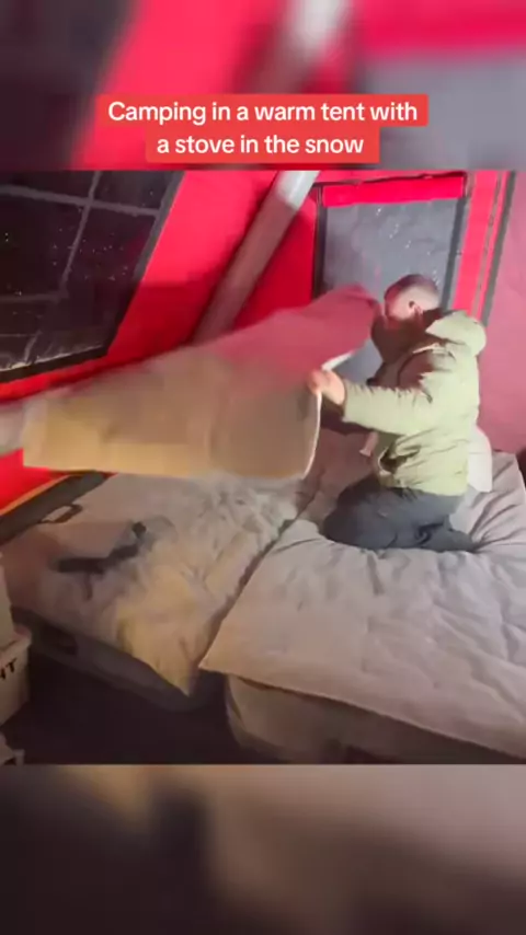 Acampar em uma barraca quente com um fogão na neve # bushcraft # build # camping # survival # shelter # wildlife # outdoors # outdoor # viral #