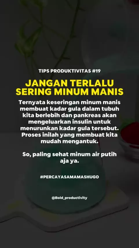 Selain berbahaya untuk kesehatan, terlalu banyak minum manis bikin kita lebih cepat mengantuk#tipsproduktifkerja#tipsproduktif#productivitytips#tipsproduktifitas