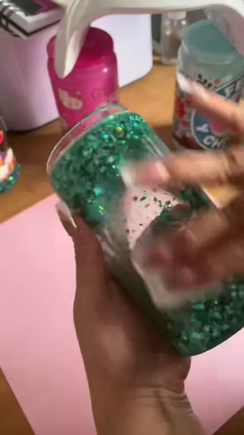 Como fazer um vidro com glitter! Estilo snowglobe # asmr # snowglobetumbler # snowglobeglasscan