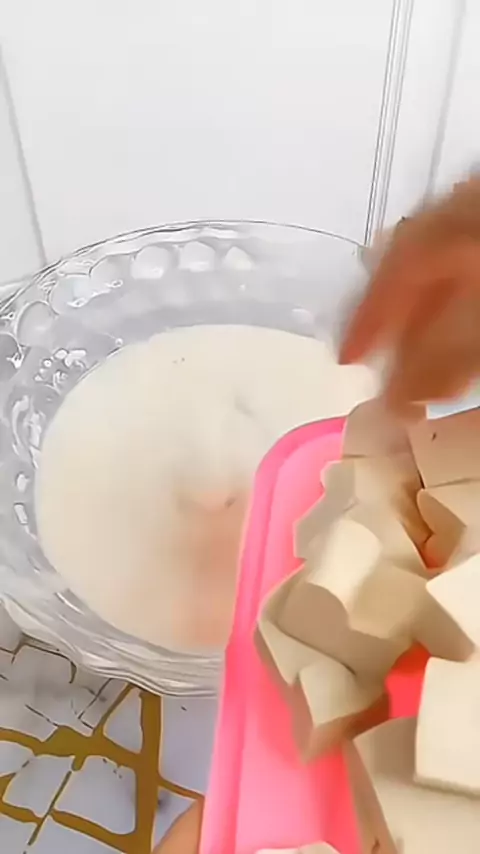 Tahu Crispy ✨ bahan - bahan: • Tahu cina • 85gr tepung terigu • 25gr tepung maizena • 1 bungkus kaldu bubuk • 1 Sdt baking powder • 400ml air#reseptahucrispy#tahucrispy##resepibuknyabinar
