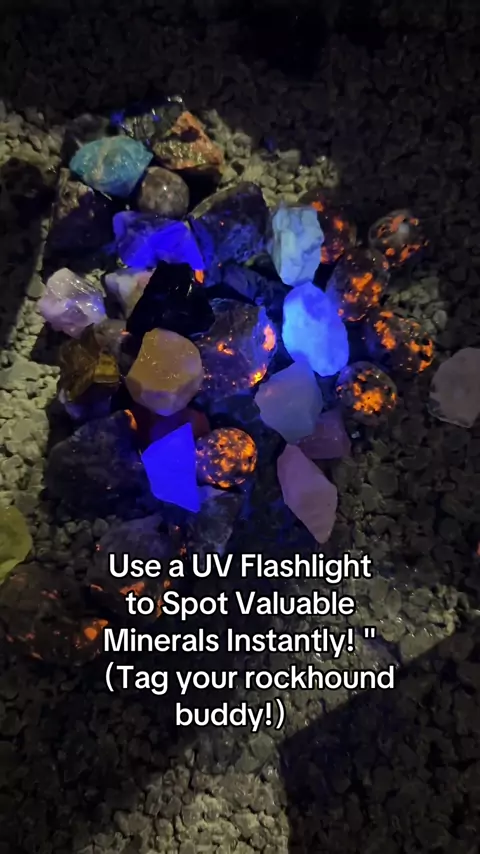 Viral Hack: Use a UV Flashlight to Spot Valuable Minerals Instantly! " (Tag your rockhound buddy!) #Rockhounding #UVLightAdventures #GeologyRocks #MineralCollector #GlowInTheDark ScienceTok OutdoorTreasure CrystalHunting DIYGeology NatureMysteries