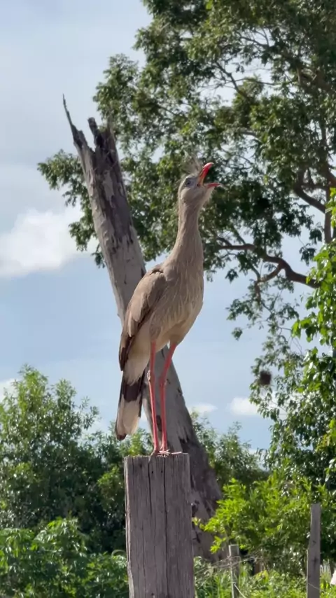 A siriema (ou seriema), especialmente a Cariama cristata, é uma ave típica do Cerrado e do Pantanal, incluindo o Mato Grosso. Ela se destaca por seu canto forte e melodioso, que pode ser ouvido a grandes distâncias e é frequentemente comparado a uma gargalhada. Esse som marcante é usado para comunicação entre indivíduos, especialmente ao amanhecer e entardecer. Além do canto impressionante, a siriema é conhecida por seus hábitos terrestres, já que prefere correr a voar. Alimenta-se de pequenos