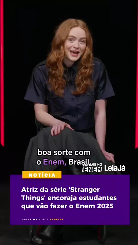 đ A atriz Sadie Sink, que interpreta a personagem Max na sĂ©rie de sucesso Stranger Things, encorajou, em um vĂdeo publicado nas redes sociais da Netflix Brasil, os estudantes que vĂŁo fazer o Exame Nacional do Ensino MĂ©dio (Enem) 2025, nos dias 9 e 16 de novembro. No recado, Sadie faz alusĂŁo aos cenĂĄrios e personagens na sĂ©rie, como Mundo Invertido, a outra realidade mostrada na trama, e o Vecna, o vilĂŁo que aparece desde a primeira temporada de Stranger Things. AlĂ©m disso, a atriz ainda de...