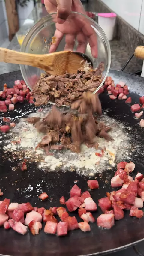 Hoje foi dia de tropeiro da perigosa! Feijão tropeiro temperado com amor, daquele jeito que faz a gente fechar os olhos a cada garfada! Comida simples, mas com sabor de história e aconchego de roça. Quem aí também ama um tropeiro bem feito? #FeijãoTropeiro #ComidaMineira #ReceitaCaseira #CulináriaAfetiva #SaborDaRoça