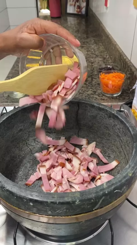 Farofa com tudo dentro Ingredientes; 300g de bacon 300g de calabresa 250g de milho 200g de azeitona 250g de cenoura ralada 200g de uva passa 1 cebola em meia lua 2 dentes de alho amassado #culinary #receitas #farofa #receitacaseira