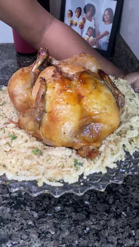 FRANGO ASSADO Pra cada kg de frango se uma 20g de sal ( informações segundo o Google 😅) Eu usei um pouco a mais porque deixei na marinada Pra essa receita usei ; ▫️Um frango de 3kg ▫️5 dente de alho(o alho roxo um dente de alho equivale a 5 daquele branco importado) ▫️Alecrim ▫️Tomilho ▫️Coentro da folha grande ▫️Pimenta do reino ▫️1 litro de vinho branco seco #frangoassado #receitas #receitasfaceis #receitaboa #frango