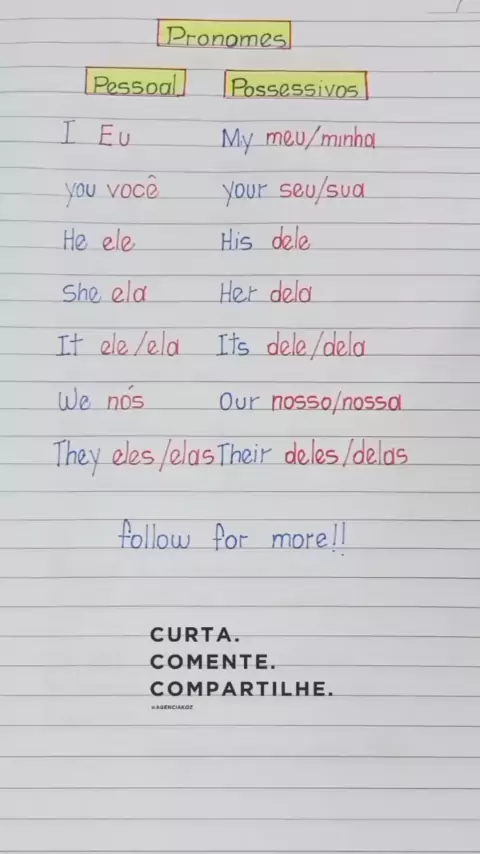 PRONOMES PESSAOL E POSSESSIVOS #inglesonline #inglesparatodos #inglesparatodos #inglesteacher #aulas