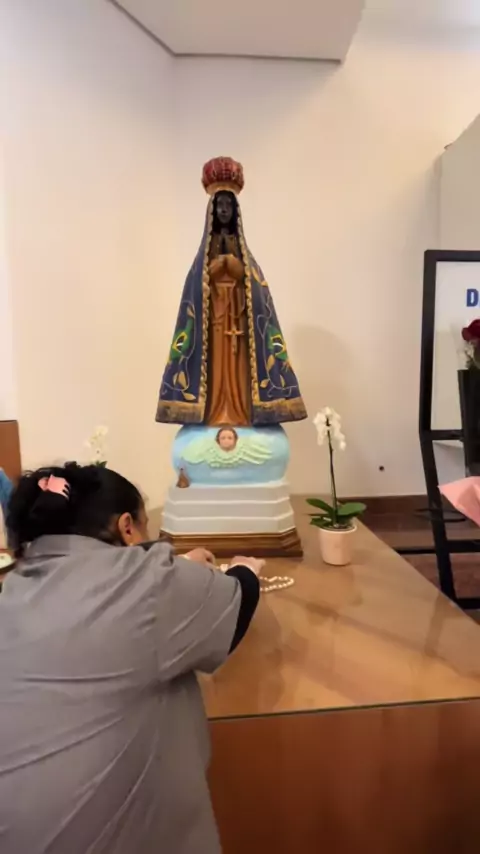 Em janeiro vim ao santuário comprar o terço do meu casamento, ainda não tinha data marcada e pedi por esse sonho. Hoje voltei com o terço e entreguei na sala de promessa como agradecimento, uma semana após o meu casamento! ♥️✨ #aparecidadonorte #santuariodeaparecida #promessa #nossasenhoraaparecida #casamento #noivascatolicas
