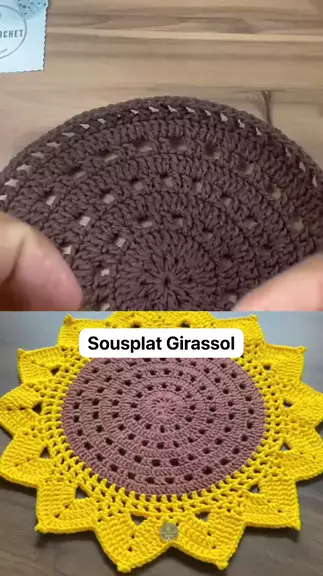 Sousplat Girassol. Passo a passo completo no meu canal Vana Crochet. Link na Bio #crochet