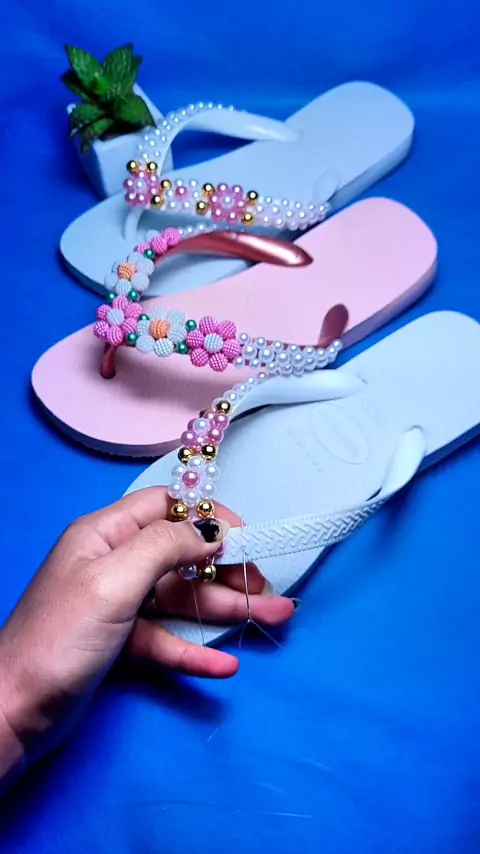 chinelo personalizada com pérolas #artesanato #diy