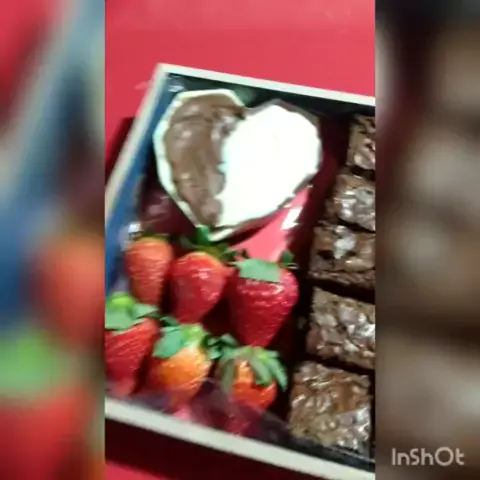 Caixa fondue com morango, uvas, brownies, para mergulhar em um ganache de chocolate meio branco, com brigadeiros ou beijinho! para ninguém colocar defeito 😋 #confeitariaartesanal #frutas #chocolate #brownies #caixafondue