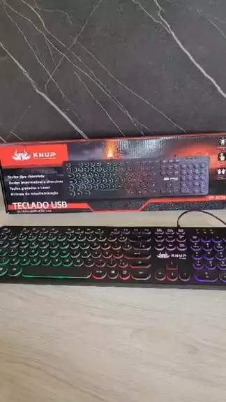 Dê uma olhada em Teclado gamer Knup KP-2059 QWERTY português Brasil cor preto com luz RGB. #teclado #computador #comprinhas #viral