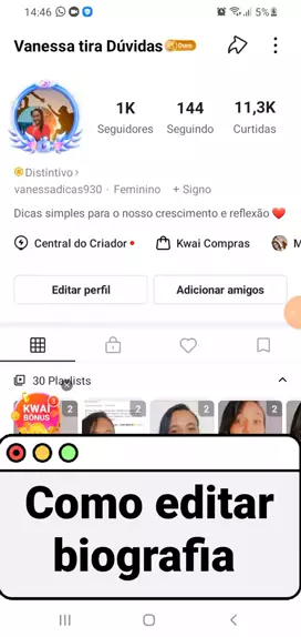 Como editar a biografia #dicas #conhecimentocomum #ajudandocontaspequena #TopKwaiers #maisviews