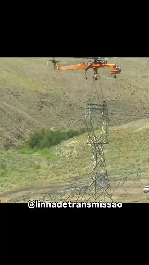 Montagem de torre de transmissão com Helicoptero . #energia #helicoptero #kwai #incrível