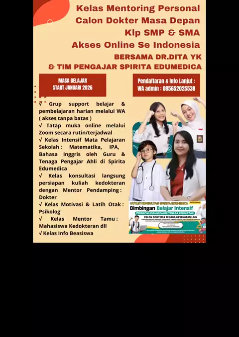 Telah dibuka pendaftaran Bimbel Online Calon Dokter Masa Depan Klp SMP & SMA yg bisa diakses online SeIndonesia#jadidokter#kedokteran#bimbelkedokteran#kuliahkedokteran#calondokter