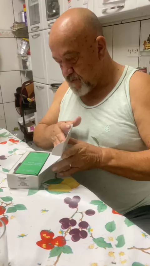 Ele ganhando o celular de presente! Te amo pai! #familia #Pai #fy #presente