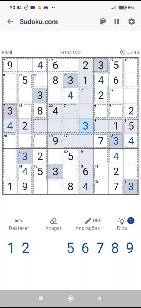 Jogando Sudoku #Sudoku #Jogo #mobile #números #calmo