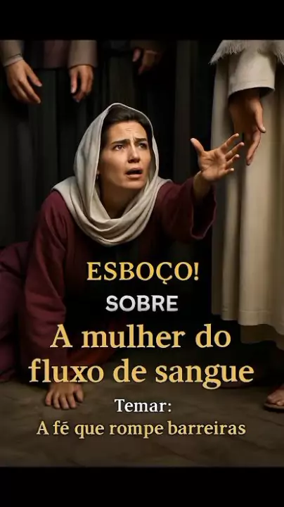 #mensagemeimagem O esboço bíblico sobre a mulher do fluxo de sangue pode focar na fé, na perseverança e na cura. A história, encontrada em Mateus 9:20-22, Marcos 5:25-34 e Lucas 8:43-48, destaca a fé da mulher em Jesus como o caminho para a cura de sua condição prolongada. O esboço pode abordar o sofrimento da mulher, sua busca por cura, o toque na orla do manto de Jesus e a resposta de Jesus à sua fé. A condição da mulher: Doença de fluxo de sangue por 12 anos, considerada impura pela lei jud
