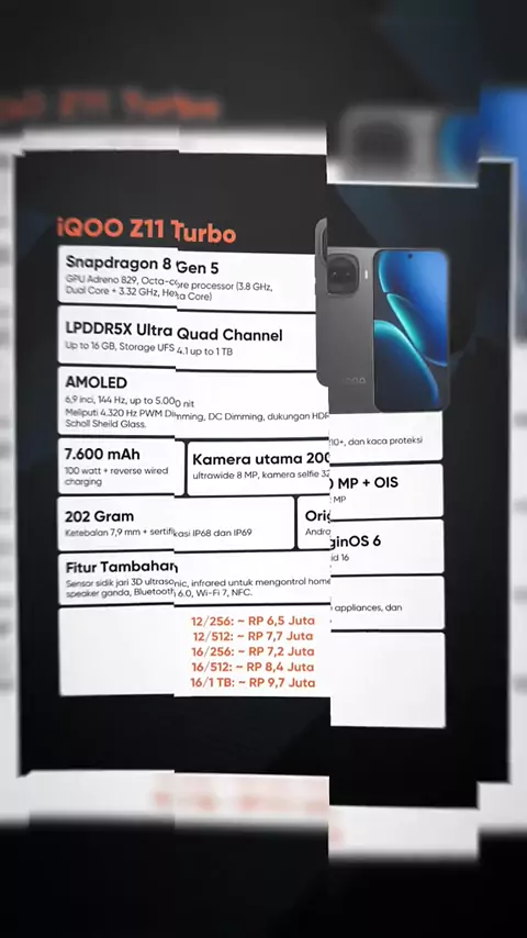 iqoo riliskan hp baru yaitu iqoo z11 turbo yang rilis duluan di China dan iqoo z11 turbo pakai Snapdragon 8 gen 5 + batre 7.600 mAh dengan 100W flash charge di China harganya mulai dari 6 - 9 jutaan dan bakal di rilis di global sebagai iqoo 15R #iqoo #handphone #vivo